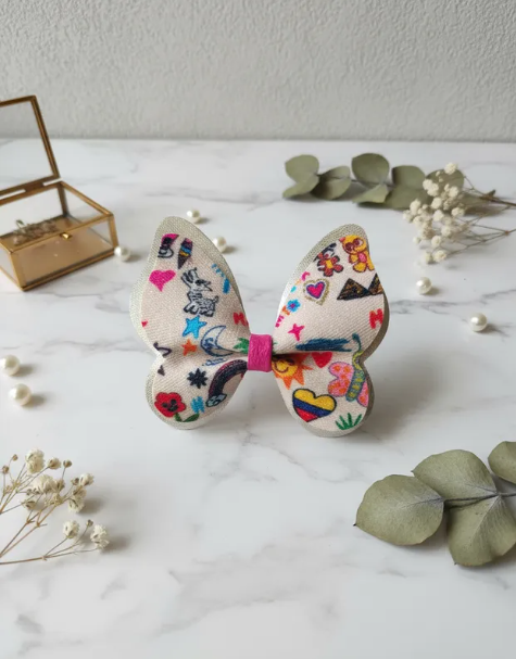 Descripción: 💝 Hermosos lazos modelo Mariposa, hechos con cuerina, puedes escoger su presentación en Pinza o Balaca a la medida, según su preferencia.